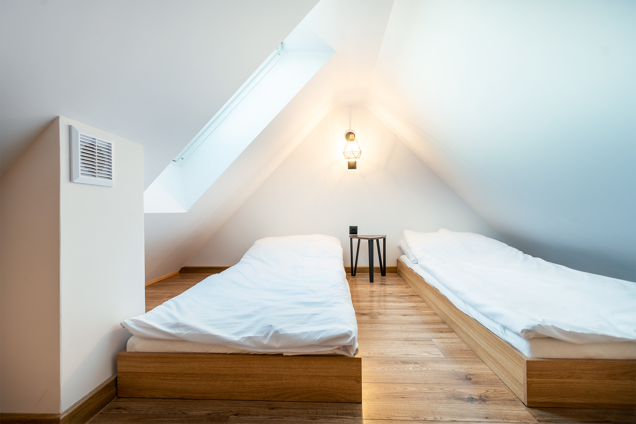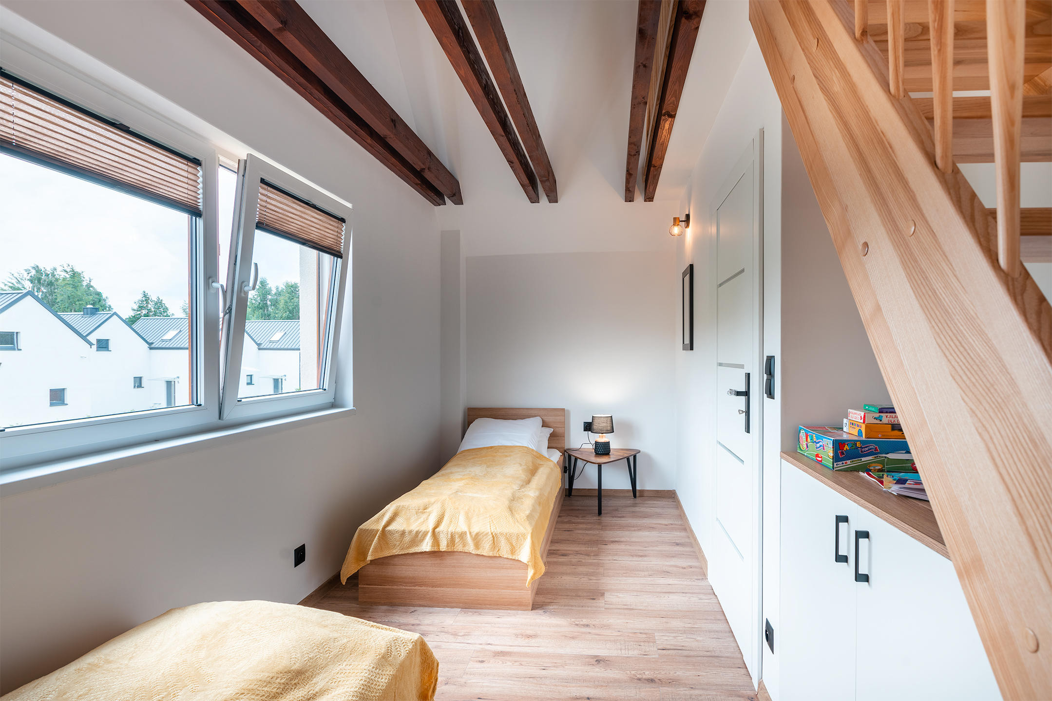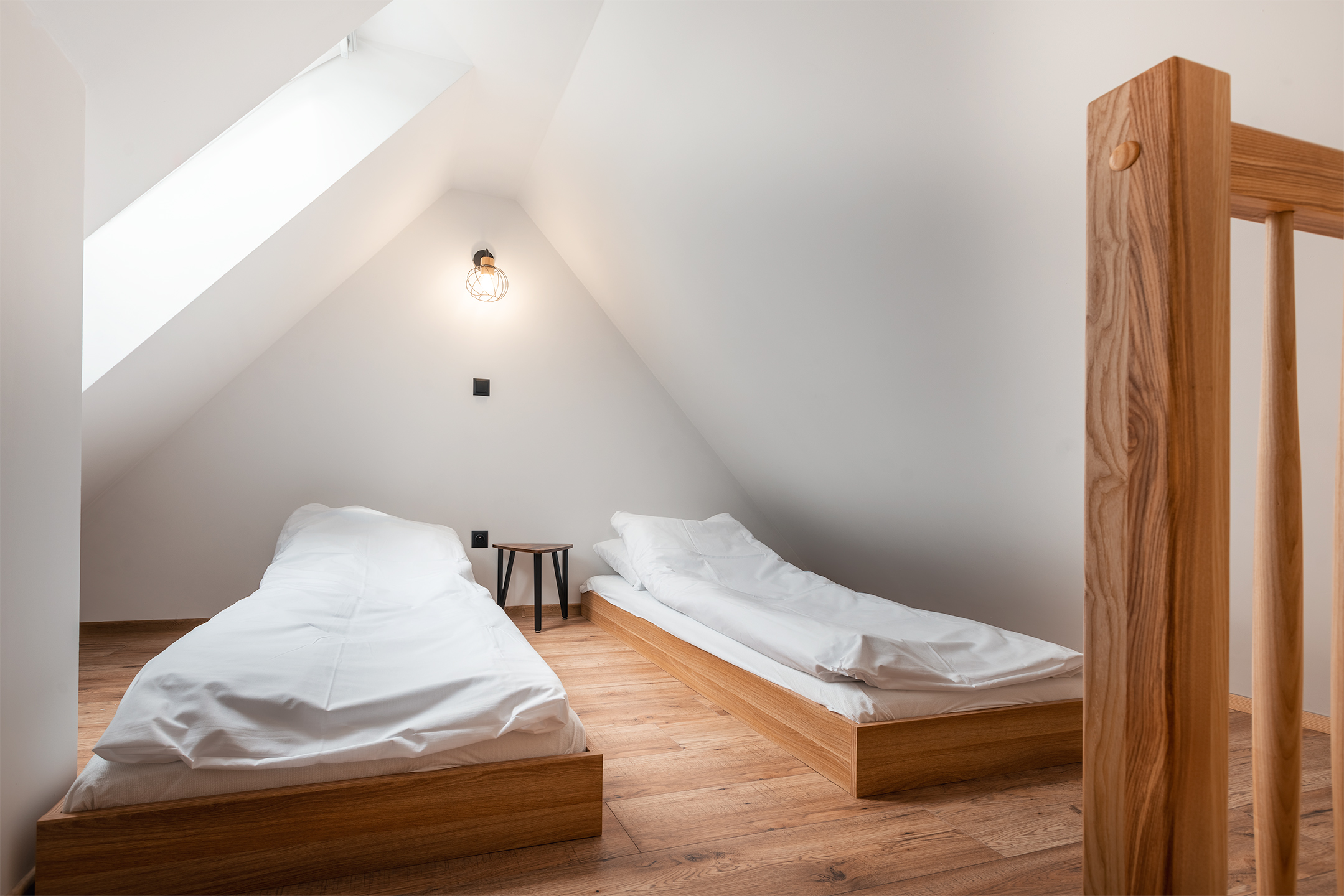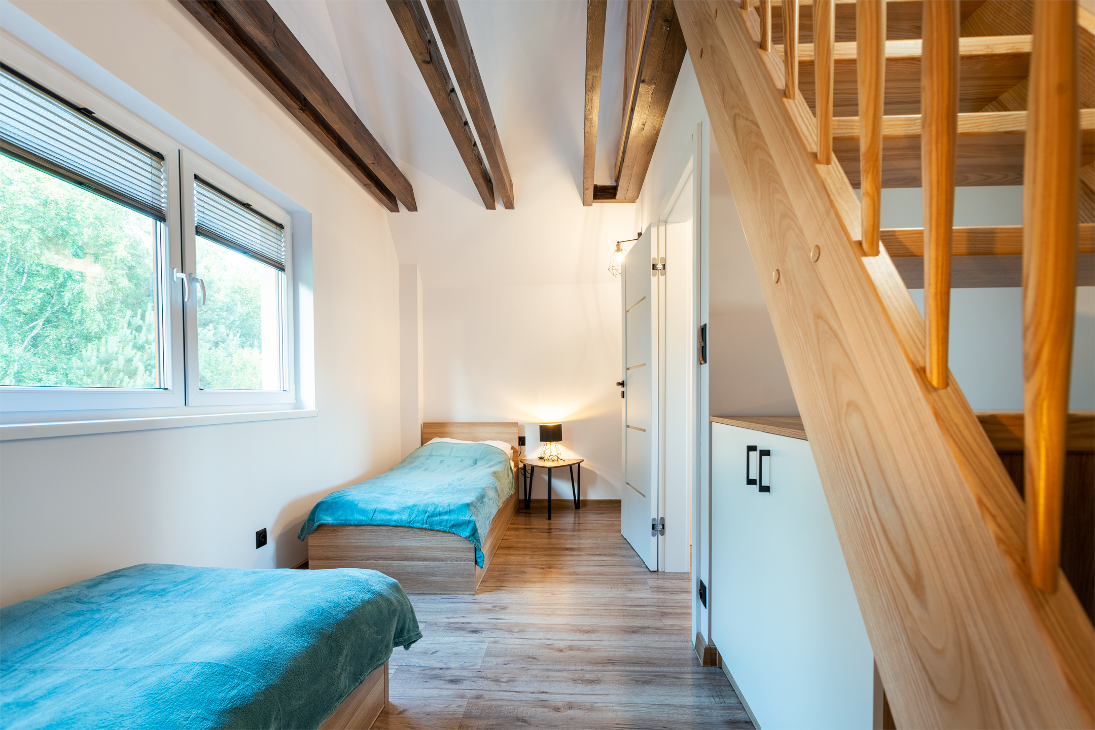 • 4 łóżka pojedyncze, z czego 2 na antresoli
